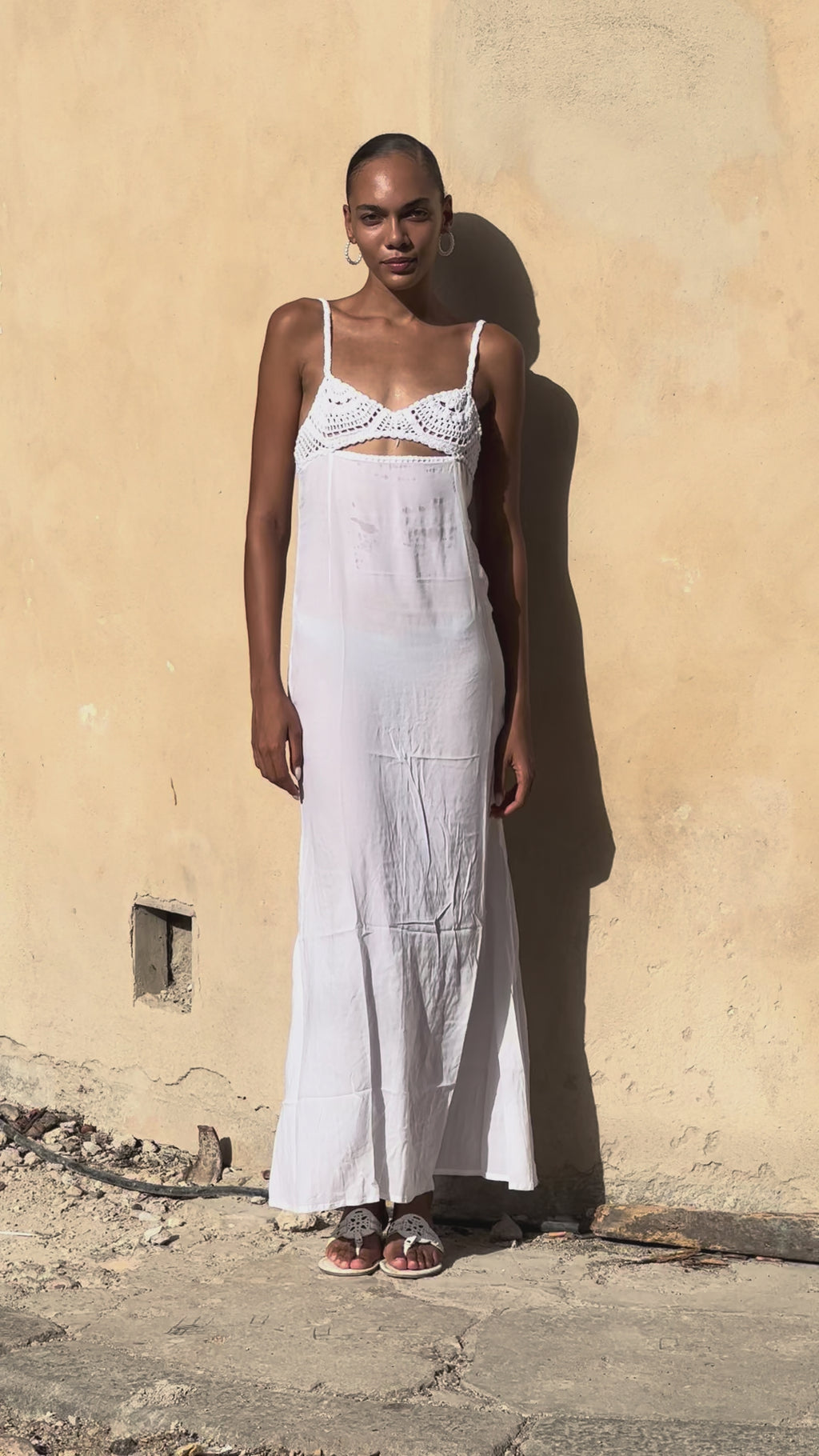 Crafted from a sustainable lyocell blend, this maxi dress features our signature crochet motif detailing across the bust for a flattering, feminine fit.